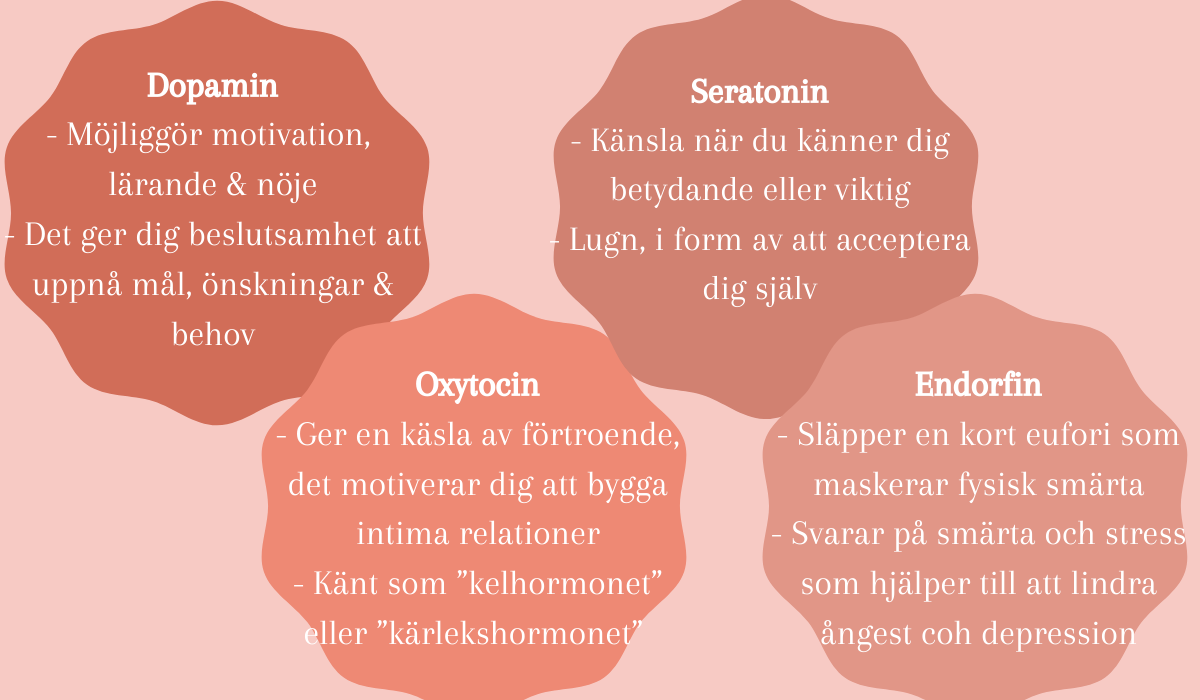 Här ger vi tips på vad du kan göra själv för att påverka vårt belöningssystem med de utlösande ämnena Dopamin, Oxytocin, Seratonin och Endorfiner.